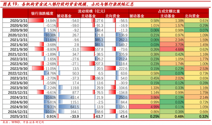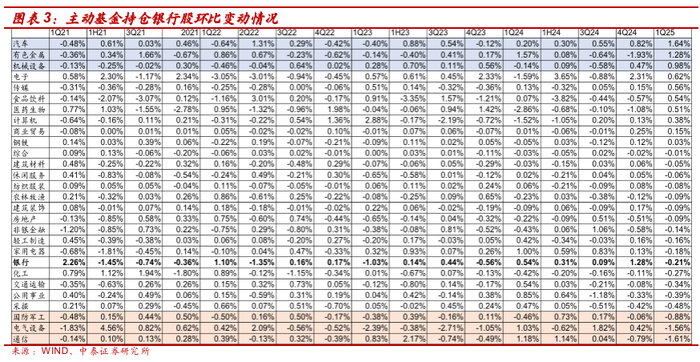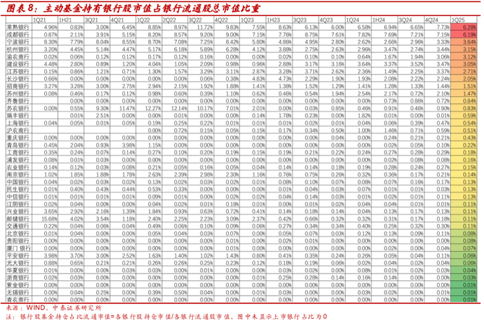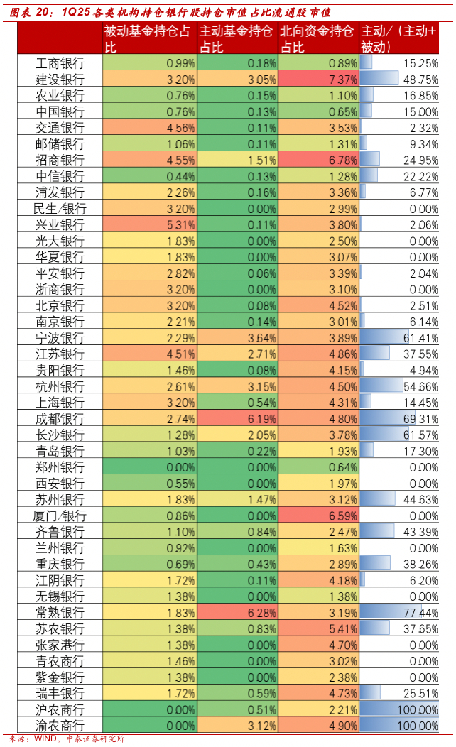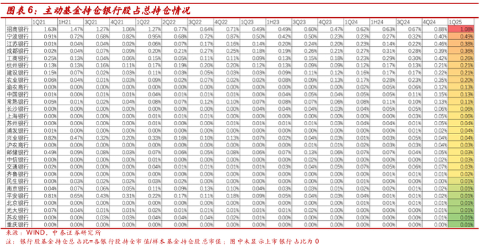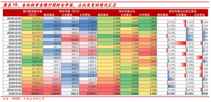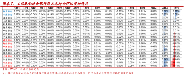 详解基金1Q25银行持仓:主动资金小幅减持、北向资金增持【中泰银行·戴志锋/邓美君/马志豪】