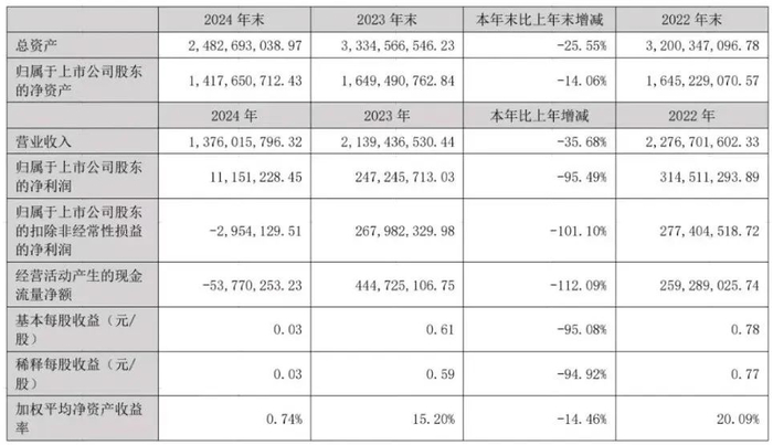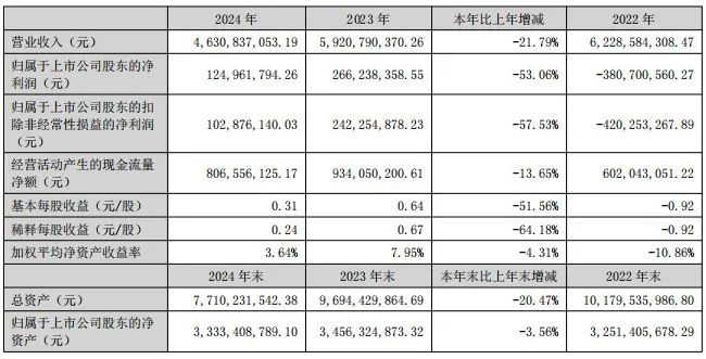 4月18日,德尔未来公布2024年年报,公司营业收入为15.2亿元,同比下降21.1%;归母净利润亏损8952万元,同比下降381.9%;扣非归母净利润自去年同期亏损996万元变为亏损1.18亿元,亏损额进一步扩大。