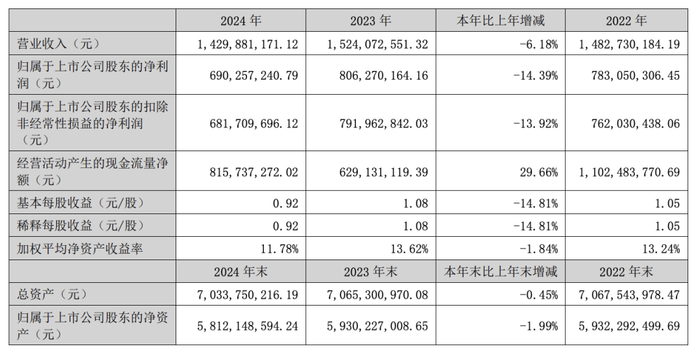 2024年,富森美营业收入14.3亿元,同比下降6.18%;归属于上市公司股东的净利润6.9亿元,同比下降14.39%,基本每股收益0.92元/股,同比下降14.81%。