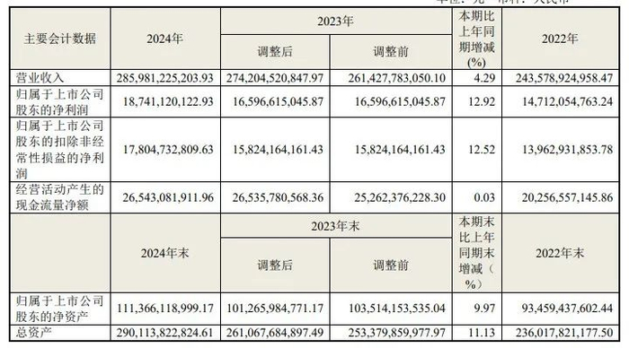 海尔智家发布2024财年业绩。报告期内,海尔智家营业收入达2859.81亿元,同比增长4.29%;归母净利润为187.4亿元,增长12.92%。营收与净利润均创出历史新高。公司2024年海外内营收基本各占50%。主营业务按照地区来分,国内营收为1417亿元,增长了3.12%,毛利率为29.79%;海外市场营收为1429亿元,同比增长了5.32%,毛利率为25.4%