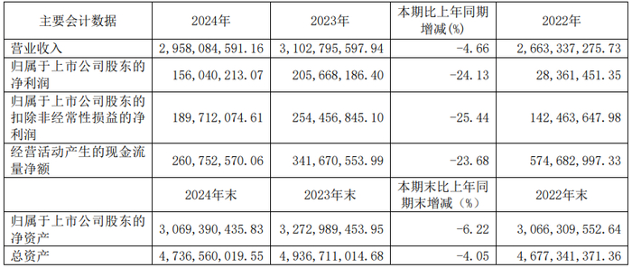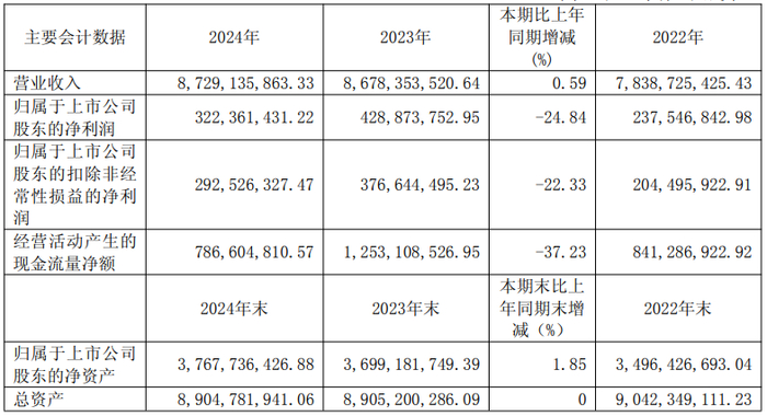公告显示,喜临门2024年实现营业收入为87.29亿元,同比增长0.59%;净利润为3.22亿元,同比下降24.84%;扣非归母净利润为2.92亿元,同比下降22.33%。