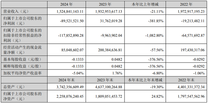 德尔未来:营收15.2亿,净利润亏损8952万