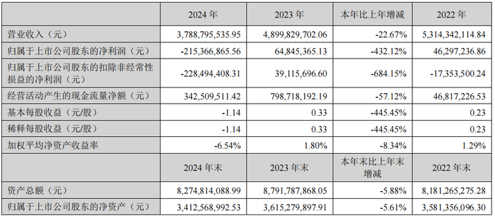 4月25日,梦百合发布2024年年报。报告显示,公司2024年营业收入为84.49亿元,同比增长5.94%;归母净利润为-1.51亿元,同比下降242.04%;扣非归母净利润为-2.80亿元,同比下降376.84%。