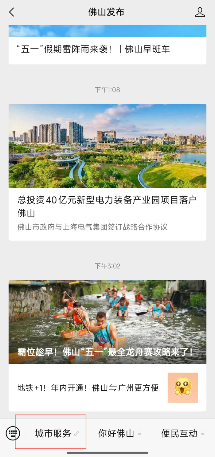1. 关注“佛山发布”微信公众号,点击微信菜单栏城市服务进入佛山城市服务平台,点击【公积金