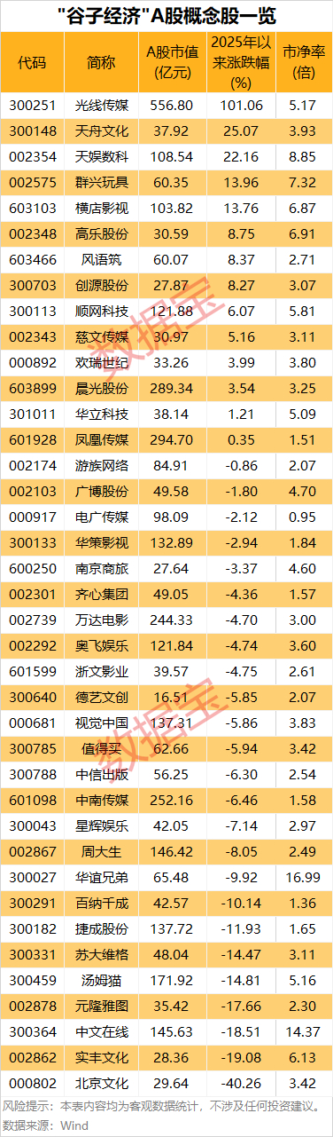 二级市场表现方面,“谷子经济”概念股今年以来平均下跌0.26%,8股累计跌幅超10%,包括苏大维格、汤姆猫、元隆雅图、中文在线、实丰文化、北京文化等。5股逆市涨超10%,分别为光线传媒、天舟文化、天娱数科、群兴玩具、横店影视。