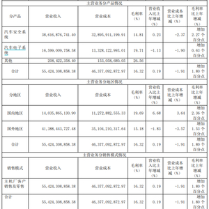 从主营业务方面来看,均胜电子的主营业务收入构成主要包括汽车安全系统、汽车电子系统等。其中,汽车安全系统业务营收占比69.13%,汽车电子系统占比29.71%。