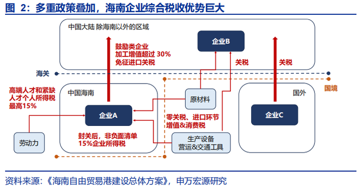 多重政策叠加,海南有望成为企业在国内的“税收洼地”。具体而言,最核心的四条政策分别是: