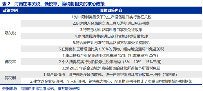 『2』生产设备&原材料“零关税”:全岛封关运作前,对部分进口商品,免征进口关税、进口环节增值税和消费税。全岛封关运作、简并税制后,对进口征税商品目录以外的商品,免征进口关税。