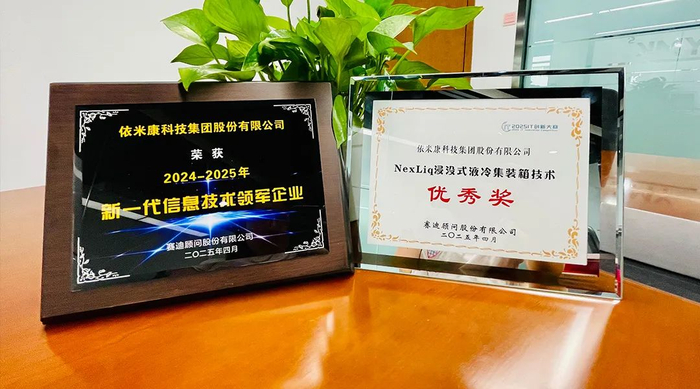 在同期举办的2025 IT创新大赛中,依米康凭借NexLiq浸没式液冷集装箱技术从众多参赛项目中脱颖而出,斩获优秀大奖。