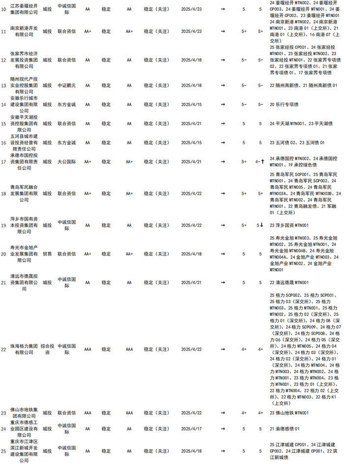 本文摘自:2025年4月25日已经发布的《中国信用债评级调整周报》