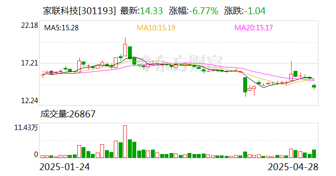 4月26日,家联科技(301193.SZ)发布2024年年度报告,公司2024年实现营业收入23.26亿元,同比增长35.16%;归母净利润5700.05万元,同比增长25.68%,业绩呈现稳健增长态势。