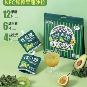 在暴肌独角兽旗舰店,商家宣称其一款“液体沙拉”产品“16种果蔬营养一饮而尽”,补充每日蔬果缺口,每袋所含膳食纤维约等于147g羽衣甘蓝中的含量。赛必健旗舰店宣称其一款“沙拉加倍”复合果蔬汁饮料热销10万余袋,添加了18种果蔬,“把营养装进一袋果蔬汁里,一袋≈吃500g新鲜果蔬”。balancemaster(均衡大师)旗舰店宣称其一款“液体沙拉”“每日份果蔬营养,补充一天膳食纤维缺口,一包满足一天蔬菜摄入量基本所需”。一包热量约64kcal(千卡),相比一顿正餐,少摄入的热量相当于慢跑108m in(分钟)。英贝健旗舰店则在其一款“代餐沙拉”产品页面打出“80m L液体沙拉≈384g新鲜果蔬,足足12种果蔬膳食,告别吃草三餐”。