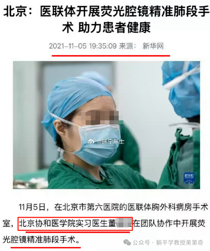 而且看看上边的毕业时间,是2023年,在前边实习的新闻,是2021年,这样计算,这位董医生,在国外念了4年文科,然后在国内从零开始念了2年书,就进了手术室,成了治疗肺癌的明星医生了。