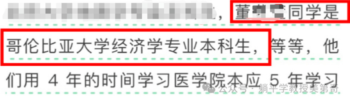 而且再仔细一看,这个学制也很神奇,咱们中国的医生,都是要念7、8年才能硕士博士毕业,而这位董同学,竟然是在国外念了4年文科,然后就转到国内念上了最好的医学院,分配到了全国最好的医院。