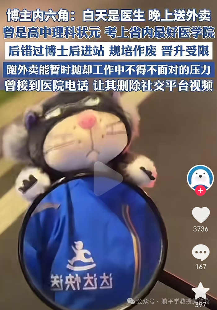 而作为对照组,普通的医学生,不但8年寒窗苦读,毕业了还在规培过程中拿着几乎要饿死的底薪,甚至要出去送外卖。阶层固化到了阶层绝望的程度。