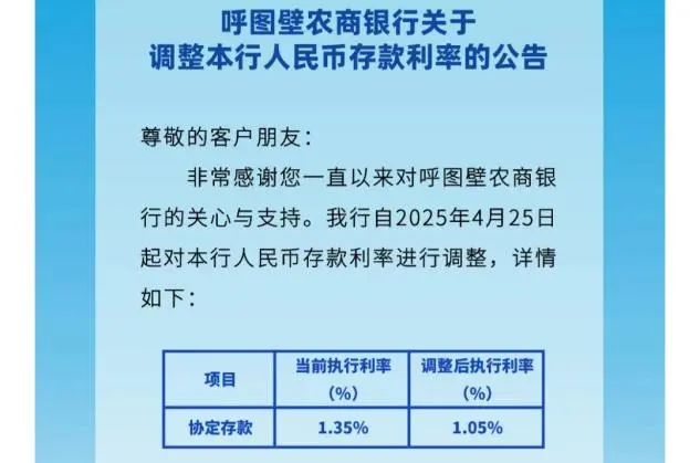 此外,新疆呼图壁农商行自4月25日起下调存款执行利率,由1.35%调降30个基点至1.05%。
