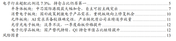 电子行业超配比例达7.3%,持仓占比仍居第一