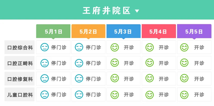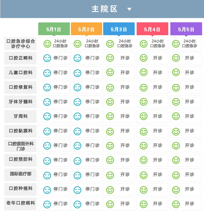 口腔科:5月1日普通门诊。