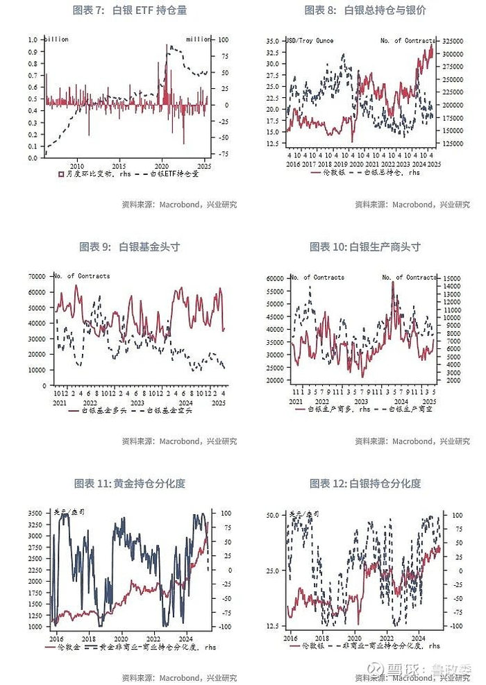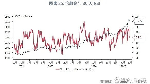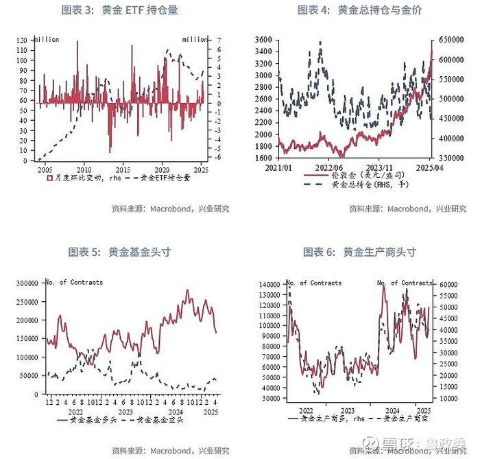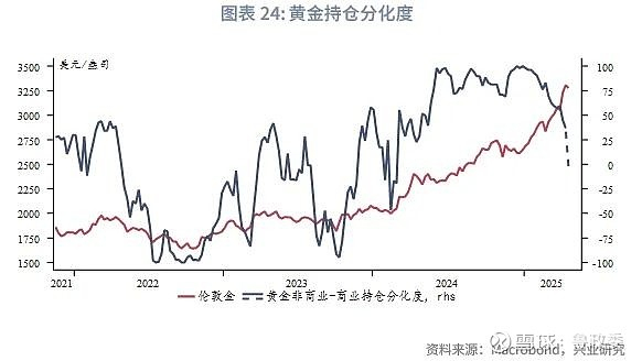 持仓方面,2025年4月黄金ETF净流入117万盎司。黄金总持仓量4月快速回落。截至4月22日,黄金持仓分化度回落至-1.94。