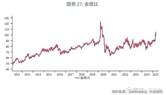 前期黄金逼空式上行金银比再度上破100,短期金银比有向下修复需求。