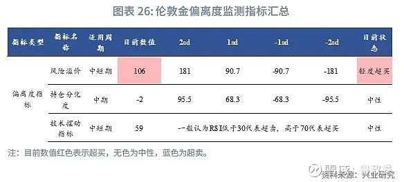 根据前文的分析,伦敦金价格的偏离度监测指标汇总如下: