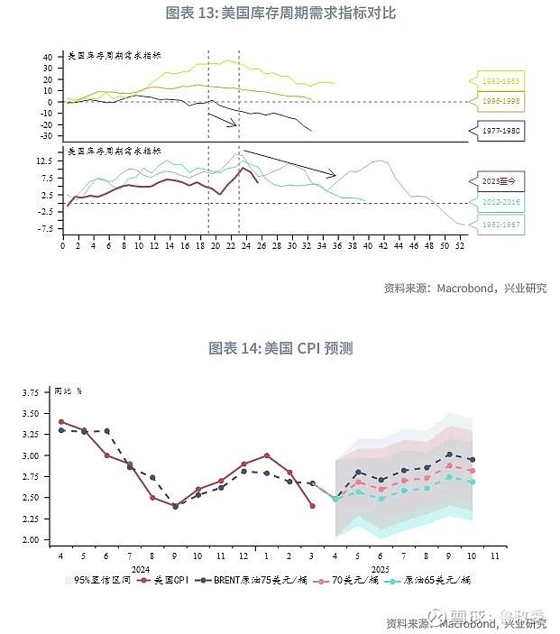 通过横向对比美国库存周期需求指标,可以发现美国在今年第二季度有较大可能性进入主动去库存阶段,美国经济动能进一步减弱的风险加大。同时,根据我们的CPI模型,美国CPI同比将从4月后开始触底回升。这意味着今年第二季度美国将进入类滞胀的宏观环境。我们利用美国高频基本面指标(2013年后)和美国十大经济数据环比(1990年至2013年)反映美国经济短期动能。当经济动能下行,美国CPI同比上行且绝对水平高于2%时,定义美国经济处于类滞胀状态。