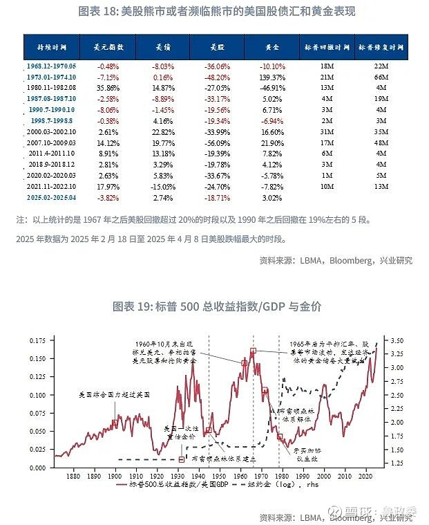 特朗普“对等关税”重创美元环流,引发美国股债汇三杀。2000年以后美国股债汇三杀或者股汇双杀确实较为罕见,不过这一场景在20世纪七八十年代常见,布雷顿森林体系解体前后美元信用曾经历了较长一段时间的信用危机,在美元信用被质疑到美元信用重建期间,美国股债汇三杀或者股汇双杀较为常见,美元现在进入了信用被破坏的过程,股债汇三杀或者股汇双杀或不再罕见。在美国股债汇三杀或者股汇双杀阶段,黄金总体受到追捧。