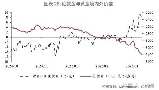 比价方面,2025年4月金银比快速回升,符合我们认为黄金结构性强于白银的判断。价差方面,4月境内外价差快速走高。