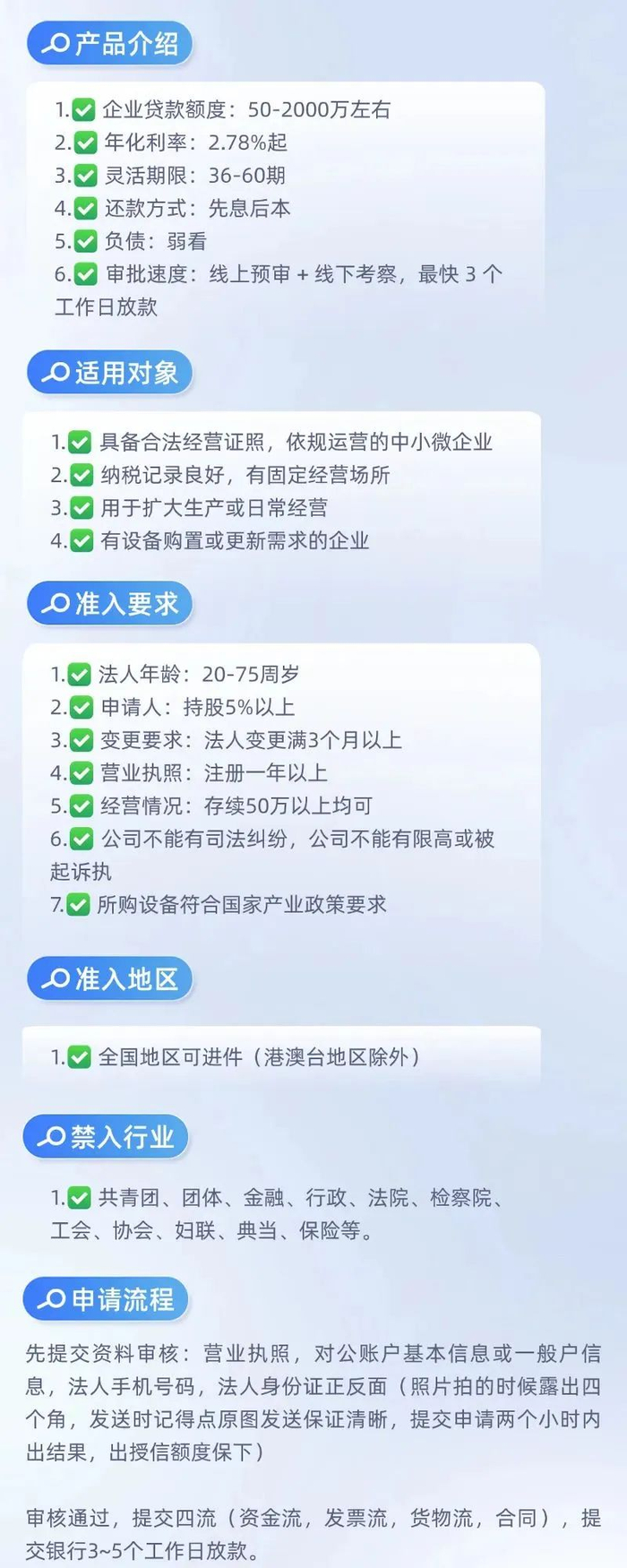 渣打银行专为中小微企业打造的 “逸商贷”,堪称融资利器。无需抵押物,纯信用贷款模式让企业摆脱资产束缚。最高 2100 万的额度,足以支撑企业拓展业务、应对突发资金需求。年化利率最低可达 3.6%,大大降低了企业融资成本。从申请到放款,仅需 3 - 5 个工作日,急企业之所急。并且,还款方式极为灵活,到期还本付息或先息后本皆可,第二年续贷时可不结清直接续贷,极大减轻了企业还款压力,让企业资金安排更具弹性。