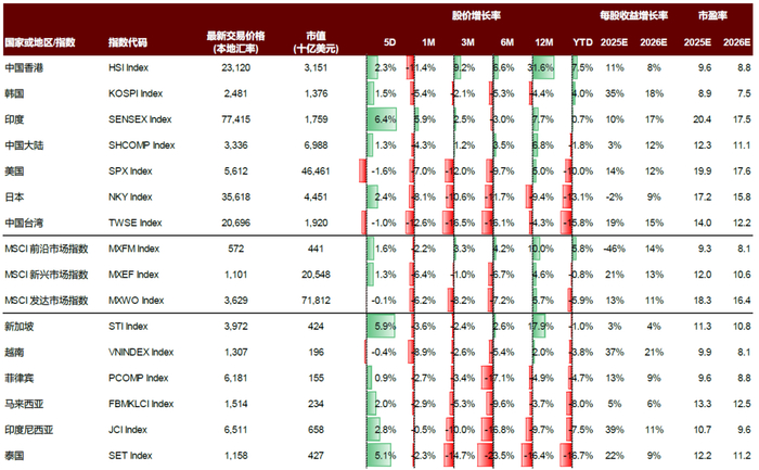 在市场存在不确定性背景下估值以及每股收益增速预计可能会持续调整。截至4月17日,印尼综合指数IDX Composite Indeks Harga Saham Gabungan(IHSG)自年初以来已经下跌7.5%。根据彭博一致预期,印尼股市目前整体估值对应10.7倍2025年远期市盈率和9.6倍2026年远期市盈率,我们认为在政府如何处理贸易摩擦前景尚不明朗的背景下印尼股市整体估值可能会继续调整。