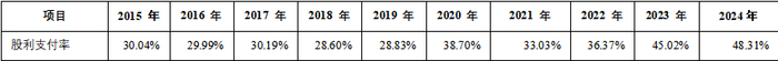 股利支付率:公司2015年~2024年的股利支付率为28.60%~48.31%,前些年公司因为业务需求扩张、资本开支较大和季节性销售特点优先保障运营资金,分红比例不算高。近几年,公司分红比例呈上升趋势,在业绩增长、现金流稳定的情况下,对股东回报的重视程度不断提高。
