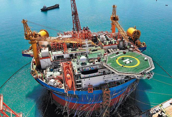 靠泊在青岛海洋工程高新装备制造基地舾装码头的“海葵一号”(2024 年 4 月 26 日摄) 李紫恒摄 / 本刊
