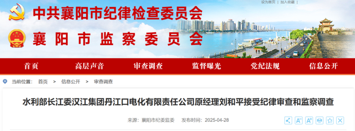 水利部长江委汉江集团丹江口电化有限责任公司原经理刘和平涉嫌严重违纪违法,目前正接受中央纪委国家监委驻水利部纪检监察组纪律审查和湖北省襄阳市保康县监察委员会监察调查。