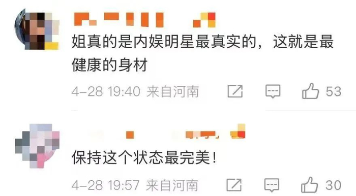 网友直呼:姐这个身材真是刚刚好。其实,每种身材各有各的好,只要健康不必拘泥于某一种单一标准,谁说女演员非得体重不过百。
