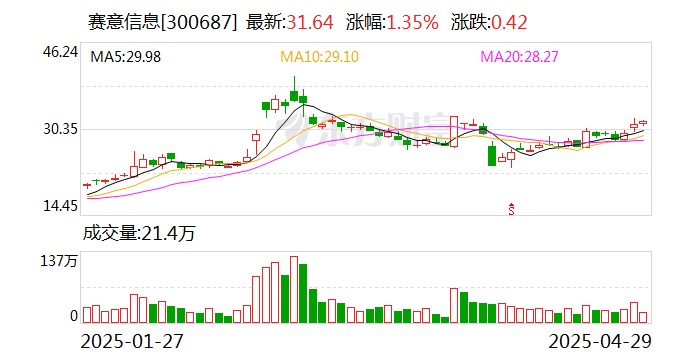 赛意信息一季度营收同比下降9.4%,经营现金流净额为-1.29亿元