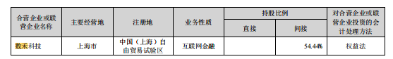 分众传媒称因数禾科技其他股东减资,本公司持股比例由 36.5285%被动增加至 54.4428%。根据数禾科技公司章程,股东会特别决议需要经代表超过三分 之二表决权的股东通过方可做出决议;董事会由 9 名董事组成,本公司仅占 4 席席位,未超过半数。综上所述,本公司虽持有数禾科技 54.4428%的股权, 但无法对其施加控制,仍按权益法核算。