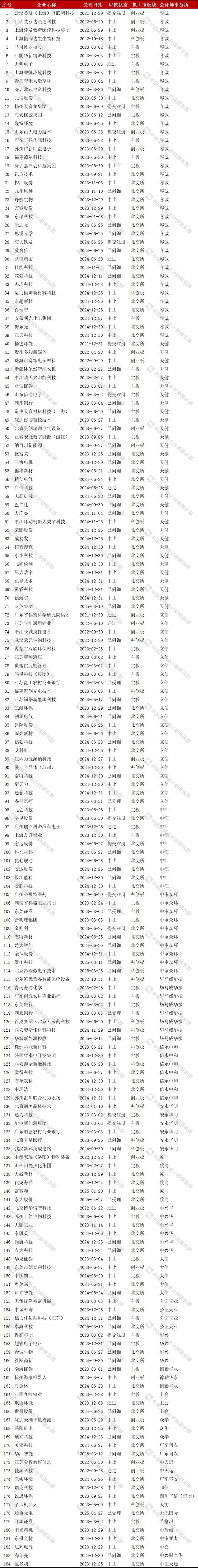 IPO在审企业名单