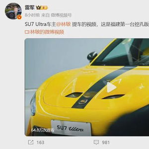 昨日,福建的林敏成为了全网第一位提到挖孔版小米SU7 Ultra的车主,提车后,他激动地在微博上分享了自己的提车视频。