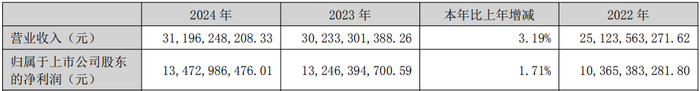 4月27日,泸州老窖披露2024年报和2025年一季报。报告显示,2024年公司实现营业收入311.96亿元,同比增长3.19%;实现归属于上市公司股东的净利润134.73亿元,同比增长1.71%。2025年一季度,泸州老窖实现营收93.52亿元;实现净利润45.93亿元。