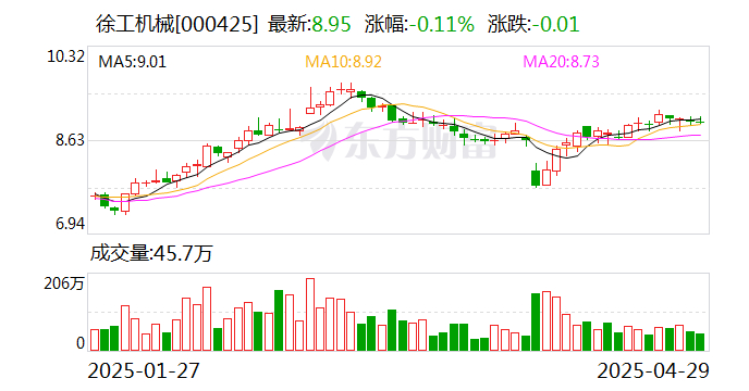 徐工机械一季度归母净利润20.2亿元,同比上升26.4%