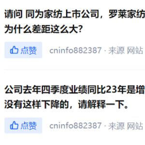 4月28日,富安娜举行2024年度暨2025年第一季度网上业绩说明会,也被大量投资者问及一季度业绩大幅下滑原因。