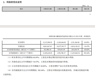 其中,2025年一季度,富安娜产生财务费用221.29万元,实现其他收益486.15万元、公允价值变动收益36.4万元、信用减值损失收益1369.06万元,分别较去年同期变动60.09%、-54.47%、-60.82%、585.64%。