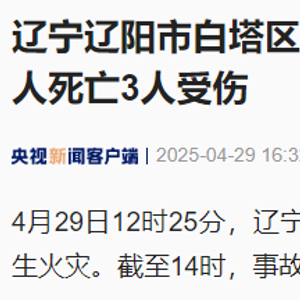 已致22死3伤,辽宁一饭店发生火灾! 陕西都市快报 《都市快报》官方账号 2025.04.2916:59 关注 4月29日12时25分,辽宁辽阳市白塔区三里庄回迁楼附近一饭店发生火灾。截至14时,事故已造成22人死亡、3人受伤。 来源:央视新闻 编辑:高磊审核:朱美红 王晶