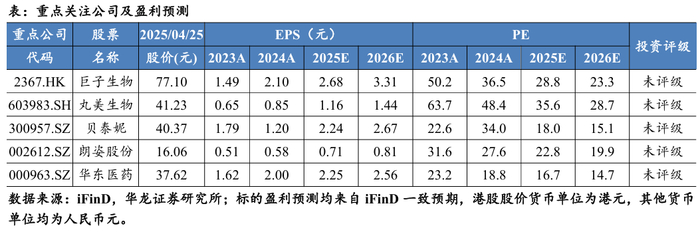 华熙生物在医美领域取得重大突破,其自主研发的“润百颜·玻玻”作为国内首款获批Ⅲ类医疗器械证的面部肤质改善水光产品正式上市。这一成果不仅彰显了华熙生物在透明质酸领域的技术领军地位,也标志着水光产品市场从无序发展迈向规范化、精细化的新阶段。维持美容护理行业“推荐”评级。建议重点关注:1)凭借完善的品牌矩阵与全面的品类布局,增长势头强劲:丸美生物;2)精准把握细分赛道,随着重组胶原蛋白与国潮美妆的崛起,有望迎来快速发展:巨子生物;3)以高性价比为切入点,同时具备强大的产品创新力:贝泰妮;4)通过大单品驱动增长,并广泛布局产品管线,未来发展潜力较大:朗姿股份;5)在创新药研发、医美产品管线的前沿布局上展现出强大的发展潜力:华东医药。