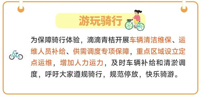为保障骑行体验,滴滴青桔将开展车辆清洁维保、运维人员补给、供需调度专项保障,重点区域设立定点运维,增加人力运力,及时车辆补给和清淤调度。