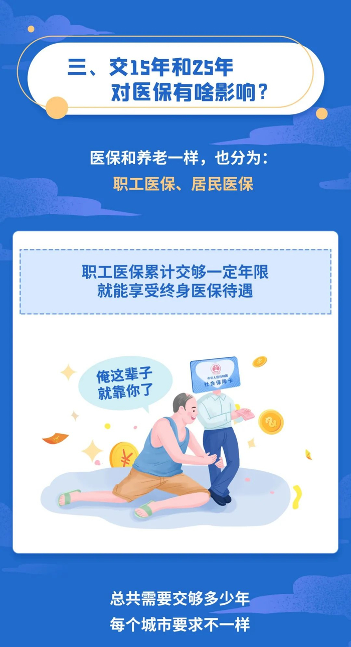 社保的其它险种,缴15年或25年,确实影响并不大: