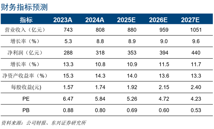 江苏银行一季度规模增速、息差等核心指标表现亮眼,资产质量优异,风险抵补能力充足,业绩实现稳健增长。24年分红比例稳定在30%,现价(2025年4月28日收盘)对应2024年股息率为5.14%。结合一季度经营情况和全年趋势,预计2025-2027年净利润增速分别为10.9%、11.5%、11.7%,对应BVPS分别为14.68、16.86、19.28元/股。2024年4月28日收盘价10.13元/股,对应0.69倍2025年PB。考虑公司区位经济优势,资产质量优异,及较高股息价值,维持“强烈推荐”评级。