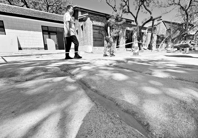 记者看到,这里的道路被一分为二:西半部分是由青石砖铺成的平坦路面,东半部却是大条石铺就的宽窄不一的道路,路面上古老的车辙印延伸向远方,只是在条石边缘的坑洼处进行了填充,方便路人行走。如此改造,只因为东半部分的条石路面原本是清代御道。