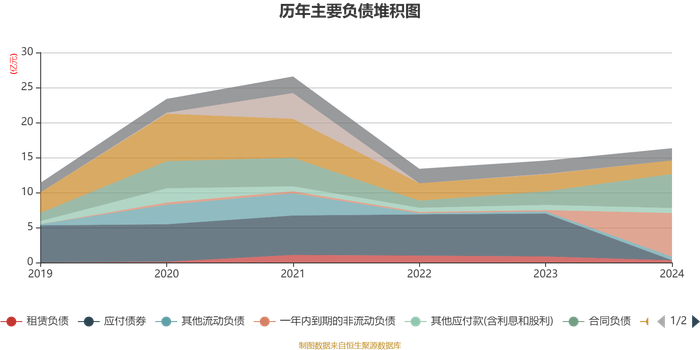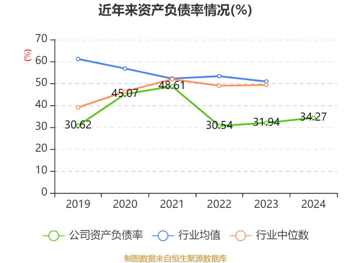 负债重大变化方面,截至2024年末,公司应付债券较上年末减少100%,占公司总资产比重下降13.45个百分点;一年内到期的非流动负债较上年末增加3039.93%,占公司总资产比重上升12.68个百分点;合同负债较上年末增加150.29%,占公司总资产比重上升5.94个百分点;应付票据及应付账款较上年末减少20.35%,占公司总资产比重下降1.28个百分点。