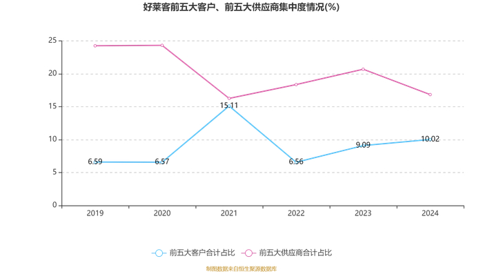 中证智能财讯好莱客(603898)4月29日披露2024年年度报告。2024年,公司实现营业总收入19.1亿元,同比下降15.69%;归母净利润8052.10万元,同比下降62.93%;扣非净利润5192.82万元,同比下降67.18%;经营活动产生的现金流量净额为3.93亿元,同比下降15.23%;报告期内,好莱客基本每股收益为0.26元,加权平均净资产收益率为2.67%。公司2024年度分配预案为:拟向全体股东每10股派现0.78元(含税)。